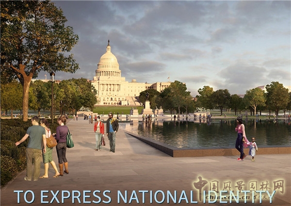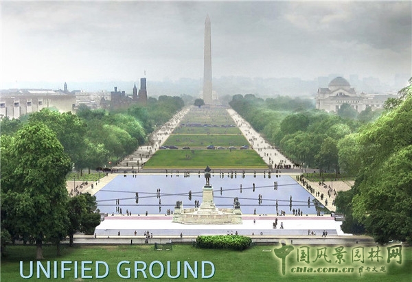 方案主要對倒影池進行了調整,使其與國家廣場的軸線相搭配。