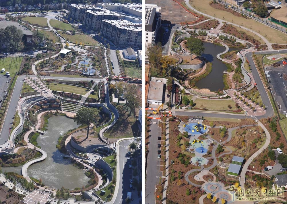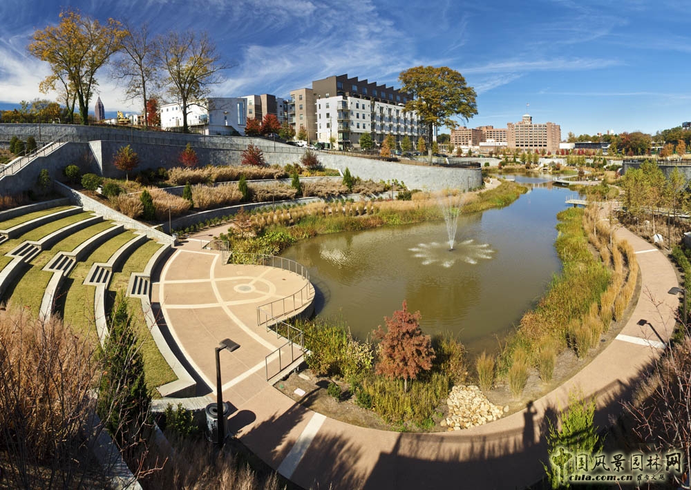 中國風景園林網訊 Historic Fourth Ward公園也許是亞特蘭大自然變革最明顯的標志。它不僅連接著亞特蘭大的45個社區,同時也是總長35公里環城綠道的一部分。那里曾經是一個垃圾遍地,道路破爛的不毛之地,如今卻是一個閃閃發光的綠洲。