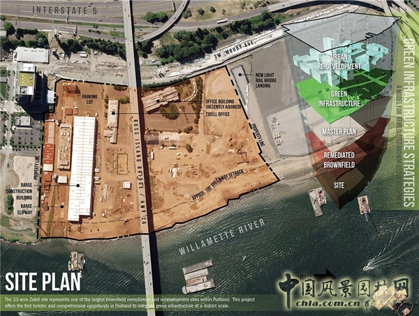 Zidell街區(qū)占地33英畝(約13公頃),是美國波特蘭市最大的棕色地帶整治區(qū)。該方案為波特蘭市街區(qū)范圍內(nèi)的綠色基礎設施建設提供了一個整體且全面的規(guī)劃。