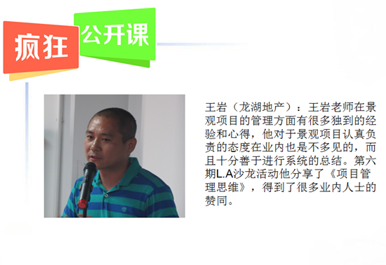 下場宣講環節,來自龍湖地產的王巖老師為大家分享《景觀工程的全景管理》。王巖老師從項目管理思維、管理如何落地、管理的流程、景觀的價值等方面進行系統講解,并結合以大興龍湖時代天街案例,詳細分享了獨具特色的《景觀工程的全景管理》實戰經驗。