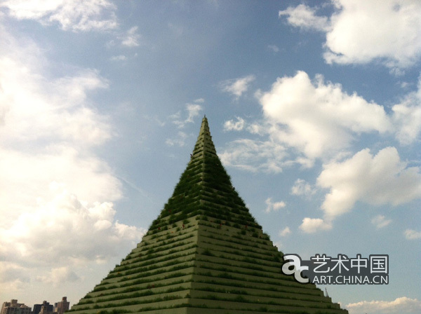 作為紐約唯一一所專供藝術家展出大型戶外作品的雕塑公園,蘇格拉底雕塑公園(Socrates Sculpture Park)目前迎來了三位雕塑家的新作,將展出至8月30日。2015年新作《活金字塔》(Living Pyramid),這是繼Agnes Denes在1982年的關注生態環境變化的作品《麥田——對抗》(Wheatfield–AConfrontation)在曼哈頓炮臺公園填埋場上種植并收獲了兩英畝小麥后,后在紐約展出的又一件大型公共作品。這件紀念碑式的雕塑作品由金字塔形結構組成,每一層都種滿了植物,像是一座綠樹成蔭的青山,從各個角度觀看都象征著一座精神的金字塔。這件作品讓人很容易聯想到藝術家曾經創作過的另一件作品,名為《三山》(“Tree Mountain”1982–96),這件作品中種滿了棵銀葉冷杉,自上而下呈螺旋形結構,寓意著將人類的智慧與雄偉的大自然結合在一起。早在20世紀70年代他就開始關注生態環境變化與人類的關系。這一雕塑為我們帶來了一個拓展思維的跳板,正如這些樹木植物在不斷的生長過程中會超過這一雕塑的金字塔形結構,并遠遠越過曼哈頓的地平線,我們的思想也終將以此為踏板和奇契機從而突破思維的限制飛得更高更遠。