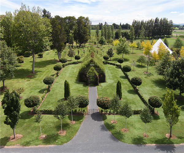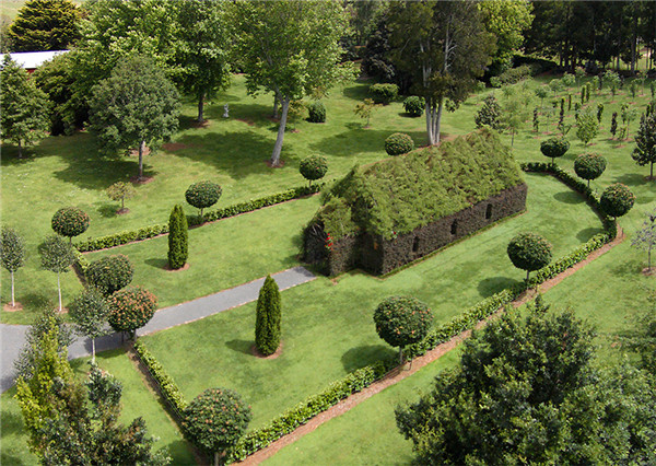 Barry Cox來(lái)自新西蘭,他熱愛(ài)大自然,同時(shí)也是Treelocations的創(chuàng)始人,他在Ohaupo一處3英畝的花園里用樹(shù)木建造了一座教堂。這座“樹(shù)木教堂”花費(fèi)了Cox整整4年的時(shí)間完成,同時(shí)完成的還有一條350米長(zhǎng)的綠色迷宮通道,該通道的設(shè)計(jì)取自于Jericho古城墻。這個(gè)植物建筑由許多不同的植物構(gòu)成:房頂是榿木,墻壁呈青銅色,由山茶、崖柏科植物構(gòu)成。