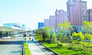 “兩橫三縱”快速路亞泰大街特色鮮明的五環綠化景觀。