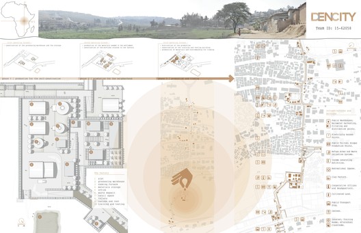 競(jìng)賽冠軍作品的名稱(chēng)是“Urukundo”,旨在通過(guò)一個(gè)“貧民窟工廠”,將廢棄物重加工最大化利用,來(lái)解決城市基礎(chǔ)設(shè)施與服務(wù)匱乏等問(wèn)題。通過(guò)創(chuàng)建一個(gè)小型工廠,利用當(dāng)?shù)馗缓惩恋纳焦葋?lái)生產(chǎn)建筑材料,改善粘土合作社現(xiàn)有的業(yè)務(wù)和設(shè)施,借此促進(jìn)當(dāng)?shù)氐陌l(fā)展和改善基礎(chǔ)設(shè)施。