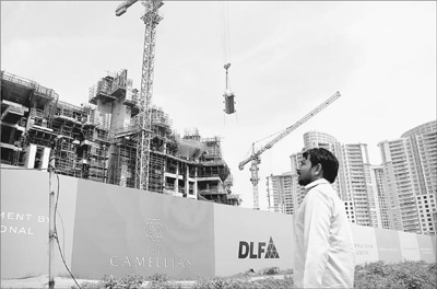 圖為印度新德里首都圈衛星城古爾崗市正在建設中的商住兩用大廈。記者 鄒松 攝