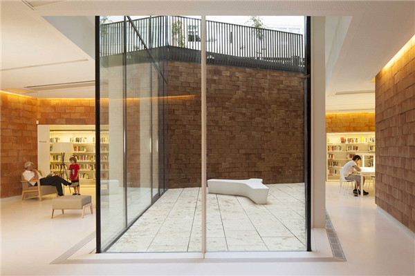 庭院和建筑體量中的室內(nèi)閱讀空間和工作空間鉸接式地連在一起。小巧的空間為使用者帶來家庭式的舒適感。