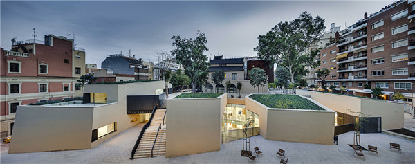 新花園從屋頂貫穿到Sant Gervasi de Cassoles街道。街道上正在規(guī)劃通往花園的新入口(位于圖書館大廳入口旁邊)。舊花園的樹木被移栽至新圖書館的花園中。