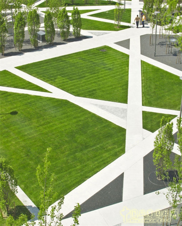 公園內的交叉回交循環系統借鑒了哈佛園的設計,在尊重學院景觀的同時,構建了網格狀的小徑,實現了公園與周圍景觀的無縫連接。