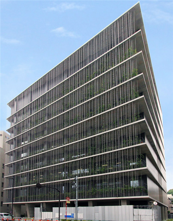 如今雨鏈在Kyosai建筑(屬于日本消費者的合作聯(lián)盟Japanese Consumers’ Cooperative union )的外觀裝飾中找到了歸宿。Seo Inc.公司和室內(nèi)設(shè)計師Jun Hashimoto合作,創(chuàng)造 “Toh”——雨鏈模式,將其安裝在整個建筑外立面的前面和后面。建筑由Tatsuya Hatori和Nikken Sekkei公司設(shè)計。