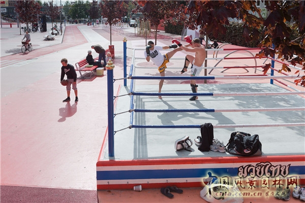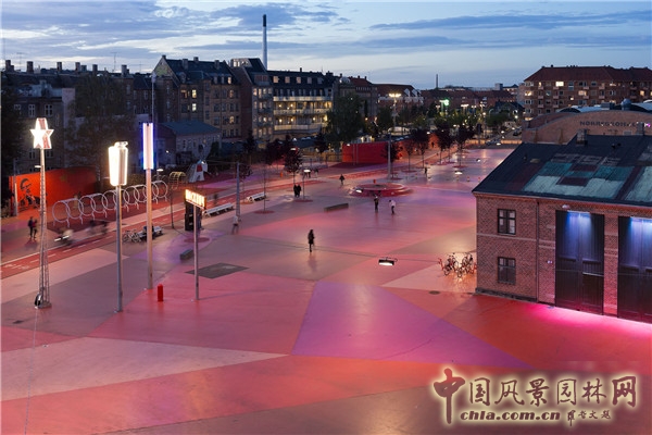 作為Nørrebro娛樂中心的延伸,該區域中一系列的娛樂設施使得居民能夠在運動和游戲的過程中進行交流。色彩艷麗的景觀表面與Nørrebro娛樂中心及其全新主入口的色調與材質相映成趣。