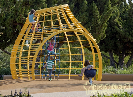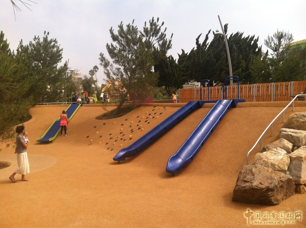 聚會之丘包含了一個大型多功能草坪,一個非正式的野餐區(qū),以及臺地看臺,為人們聚會和放松提供了一個開放空間。公園為兒童設(shè)置了專門的活動區(qū)域,巨型滑梯隨著山丘地形而建,增加了場地的趣味性。
