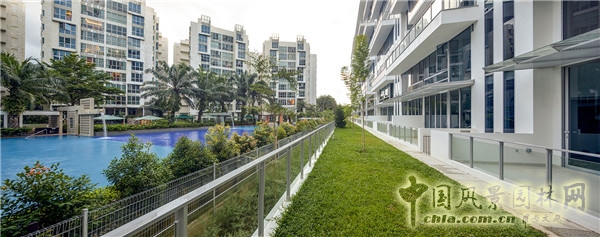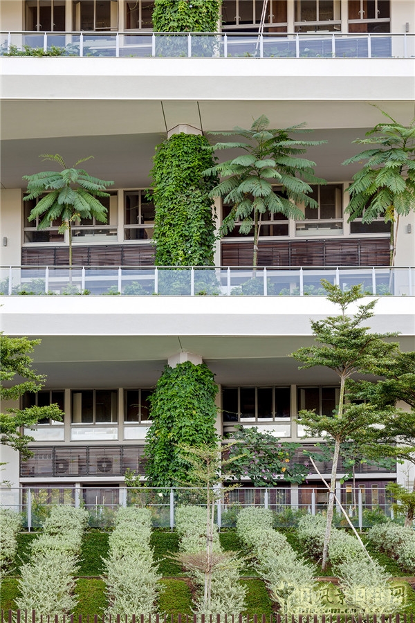 居民在公寓樓的入口處便已踏入了這片風景如畫的景觀之中,迎接他們的是綠色的挑高平臺。法式風情與花園的組合象征著這座公寓樓的品質與高雅,這種獨特設計也是對傳統住宅景觀的一大挑戰。