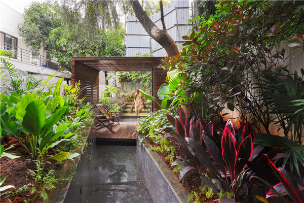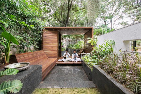該項目將一個閑置的15x50平方英尺(約70平方米)的私人住宅地基擴展為一個小型種植園、花園和圖書室。這個涼亭被構思成一件可居住的裝置,嵌入到蔥翠的景色里。
