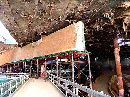圣安東尼老舊市場位于巴塞羅那新建區(qū)的網(wǎng)格板塊邊緣,因其結(jié)構(gòu)與造型具有西班牙傳統(tǒng)的風格,在城市更新重建中經(jīng)設計師與民意調(diào)查最終予以保護利用開發(fā)。其地下的一角正好位于巴塞羅那古老星形城防城墻的地基之上,在開挖的過程中又發(fā)現(xiàn)了古羅馬時期的一段步道,于是在文物保護上增加了專項課題。