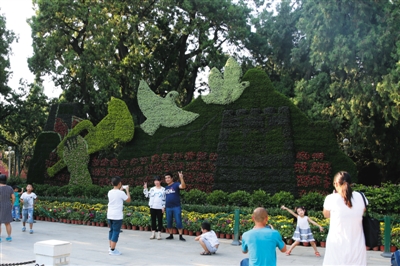北京市公園管理中心綜合處副處長(zhǎng)朱英姿介紹:今年“9·3”市屬公園花卉環(huán)境布置中,主題紀(jì)念花壇是最大的觀賞亮點(diǎn),不但主題鮮明,更與公園歷史文化和游園氛圍相結(jié)合,花壇設(shè)計(jì)體現(xiàn)園藝水平,充分展示公園生態(tài)文明建設(shè)成果。
