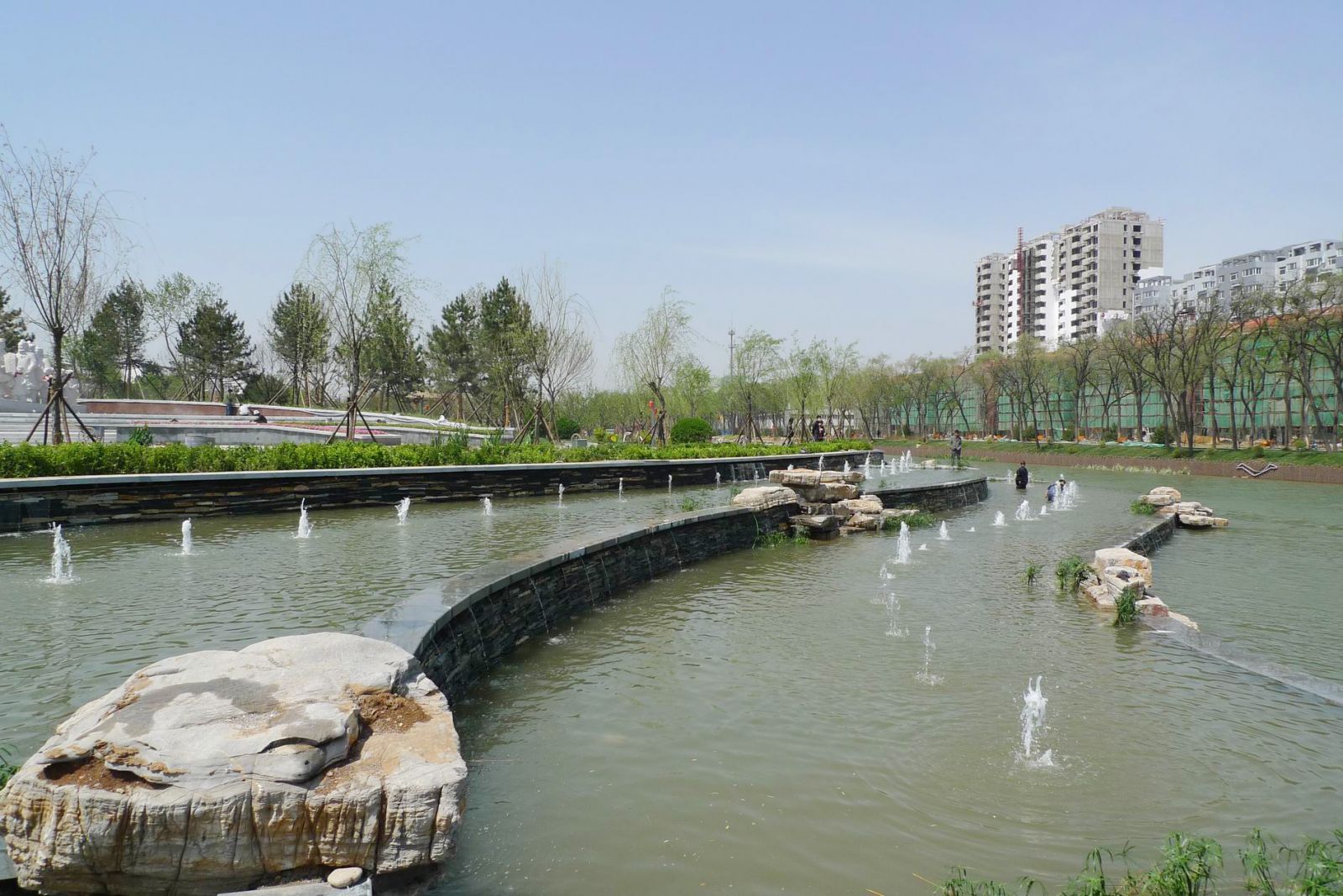 2.濱水活動區:東門廣場西側為濱水活動區,北側設置臨水臺階廣場和可觀看噴泉水景表演的塑木平臺,親水廣場南側為一面向水景的觀景休息弧形亭廊花架組合;水系過渡區設置踏水汀步與山石跌水。
