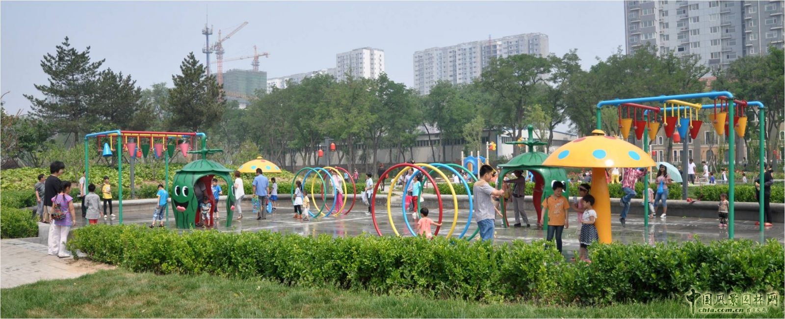 3.兒童活動區:規劃路東側區域為兒童活動區,安排了一些趣味性的活動空間,如兒童沙坑、兒童戲水池,通過結合多種卡通兒童活動設施,增加了兒童活動區的內容及趣味性。