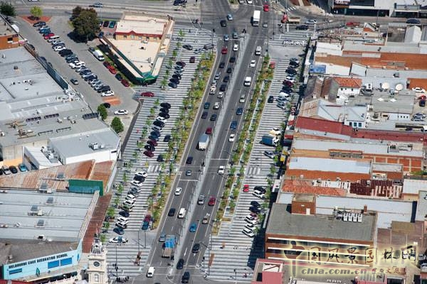 機(jī)動(dòng)化交通的發(fā)展對(duì)城市形態(tài)有重要的影響。寬闊的人行道被替換成停車場和道路,當(dāng)公共廣場的注意力集中在人群而不是汽車的時(shí)候,那么這個(gè)設(shè)計(jì)就是成功的。朗斯代爾街是平衡生態(tài)與人類需求的一個(gè)很好的例子,由Taylor Cullity Lethlean Landscapeand Urban Design和BKK Architects聯(lián)合設(shè)計(jì)。