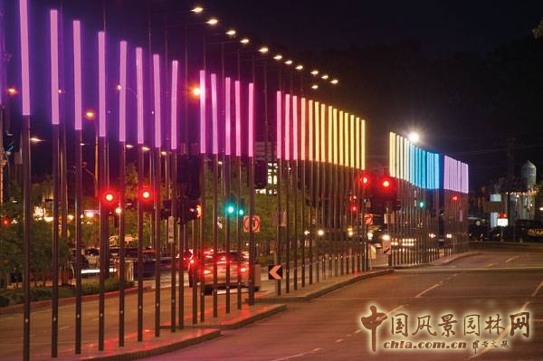 它不僅在白天是個好地方,在夜晚也同樣讓人著迷。街道兩旁是垂直的路燈,泛著彩虹的光暈,無論在任何時候都非常吸引人的注意。