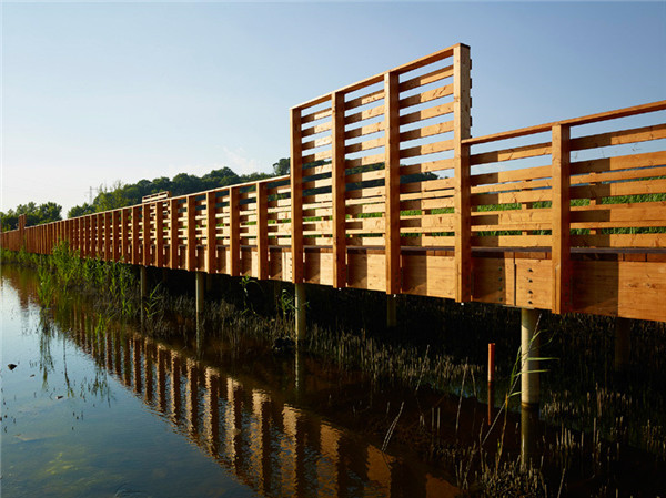 該項目盡可能不去擾亂周圍的環境。選用的所有材料(除支撐物外)都是天然透水的,沒有添加化學制品去破壞豐富的生物多樣性。Microscape 認為“蓮花”代表自然化的建筑,隨著時間的推移,“構筑的自然”將模糊自然與人工之間的界線,將二者融為一體。小路對騎車者和行人全年開放。