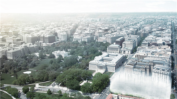 正如建筑師所言,“設(shè)計結(jié)果只是一個微妙的圖標(biāo),它并沒有想與附近其他的一些重要的美國印跡進行比較,但同時它通過參照相鄰的建筑物高度的形式被連接到城市組織系統(tǒng)。并融入到了周圍的建筑中,它也成為了一戰(zhàn)在美國社會具有影響性的代表建筑。”盡管沒有入圍,但該設(shè)計方案還是提供了一個令人信服的、更加大膽的想法。