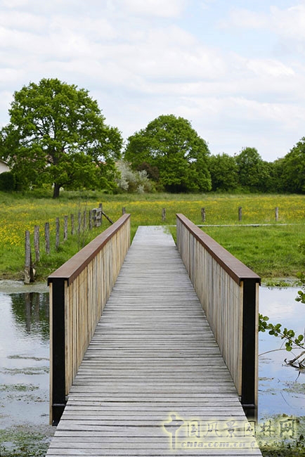 棧道宛如在“高蹺”上建起的碼頭,且其中一些呈梯狀分布,而“高蹺”則通常以橡樹(shù)為材料。狹長(zhǎng)的棧道一直延伸到草甸的盡頭,它不但勾勒出了濕地的天然邊界,更為人們打開(kāi)了一個(gè)嶄新的世界。