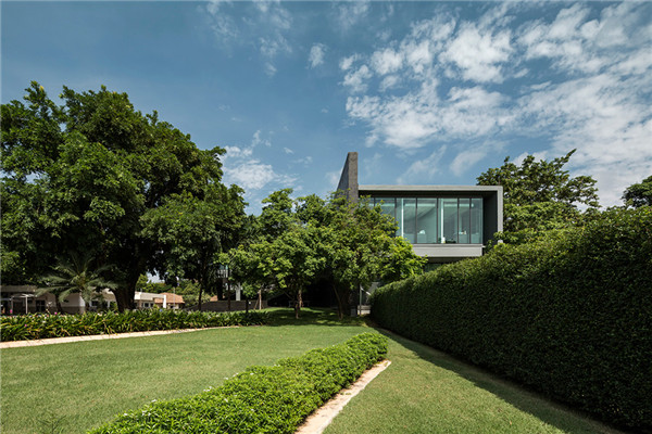 建筑位于油田的 入口處,占地2000平米,主要用作辦公。建筑師在地面上堆土造出綠草坡地,并把二層建筑架在騎上,形成一個擁有內院的虛實建筑,人們在建筑中可以欣賞到內部與外部的多層次綠景。