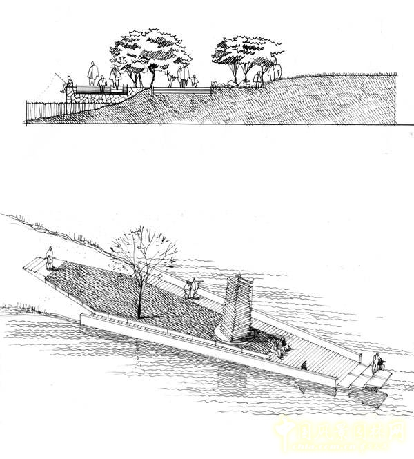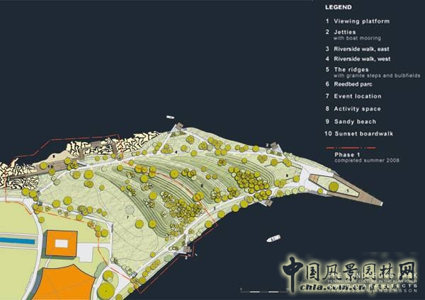 大沙半島一直以來都是一個引人注目的地方,但卻有一種說不出的失落感。在公園建設之前,這里完全沒有人愿意過來,但是建設之后就大不一樣了??査顾碌貐^分為兩個主要的部分和八個小部分,其中有一片長300米的半島就是公園的位置。半島強悍的體魄賦予場地戲劇性,從空中看就像是一只鳥的尖喙。