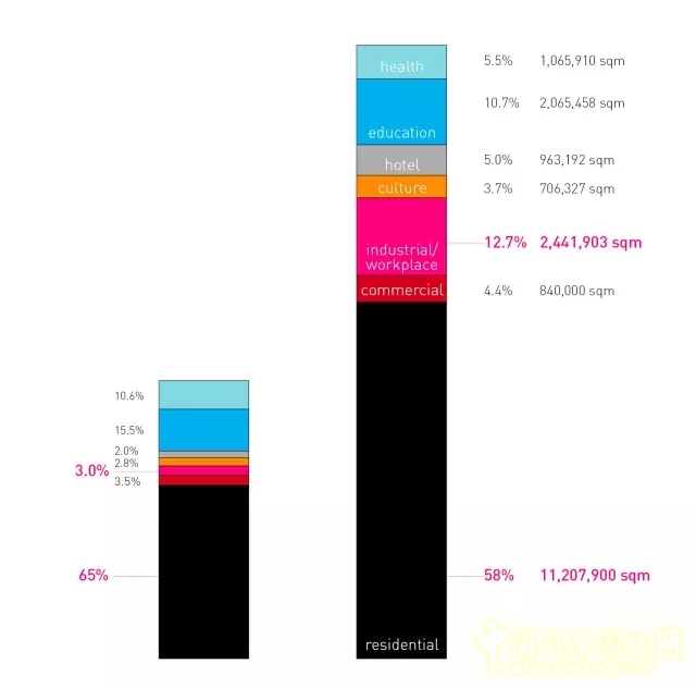 在這樣的開發(fā)規(guī)模和框架下,預(yù)期的人口將達(dá)到50萬人。住宅的總體比例將顯著減少至55%,而為新進(jìn)產(chǎn)業(yè)提供的廠房與辦公空間將達(dá)到13%。