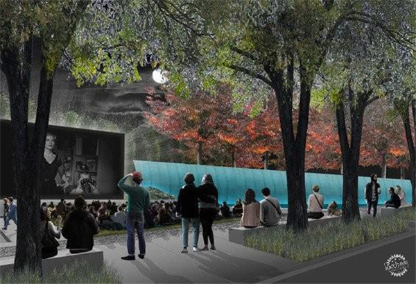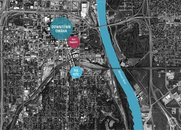 假如將這7000平方英尺邊界內的公共廣場進行抽象化的話,將會得到四大景觀形態:山丘、平原、河流和峭壁。這四種形態結合在一起形成了一種新穎的、表達當地特色的公共空間形態。同時,這個廣場也為新Bluebarn劇院、小意大利區的居民、場地南部附近的居民以及奧馬哈內較大型居住區的居民提供了一個非常良好的環境。