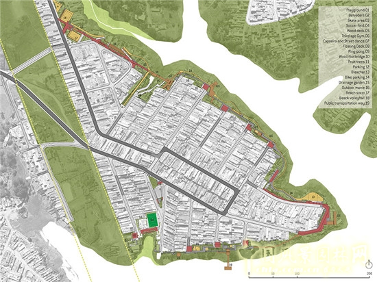 中國風景園林網訊 圣保羅城市空間結構多樣,固定區域的基礎設施建設數量巨大,在提高基礎建設質量方面面臨挑戰。此次項目主要是對城市空間結構進行干預和重新規劃,特別是整合統一那些不規則、不穩定的場所現狀等。在制定設計方案的過程中,將這片土地原有事物的發展潛在性以及限制因素等也充分考慮進去。基于對社會和空間環境的事先構想,以及此次規劃的意圖和目的,經過重新的城市規劃,如今這片區域發生的轉變顯而易見。