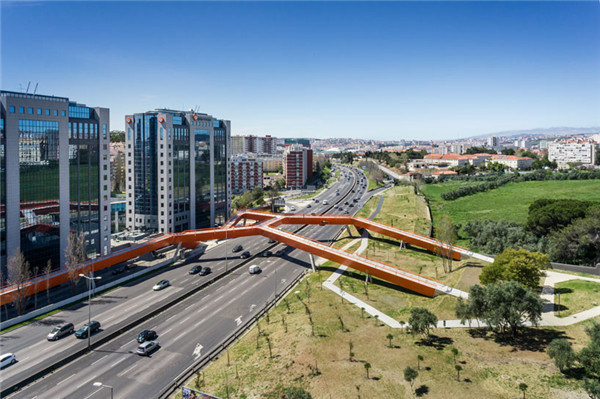 葡萄牙里斯本橙色鋼制騎行橋景觀設(shè)計(jì)