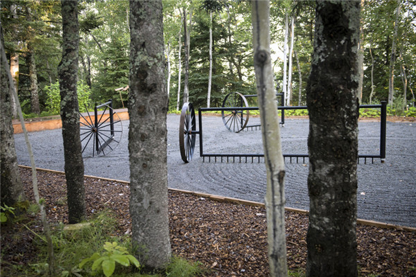 在位于加拿大魁北克省的國際花園節上,來自特拉維夫的talmon biran建筑工作室創作了作品“轉盤”,該裝置位于“干旱的陸地”上,靈感來自于日本的禪宗花園。在一片巨大的灰色沙礫池里,三個大轉盤放置在那里,它們的外形參考了農用機械的設計,底部的橫桿上有許多小的尖頭,當轉盤轉動的時候可以在沙地上劃出一個個圓形。該裝置由人手工驅動,整個花園的布局隨著幾個轉盤的轉動而不斷改變著,相比于以往只能在外面觀看,這次游客們可以到禪宗花園里面去親身體驗,為游客們提供了不一樣的體驗。