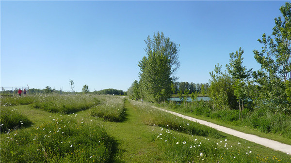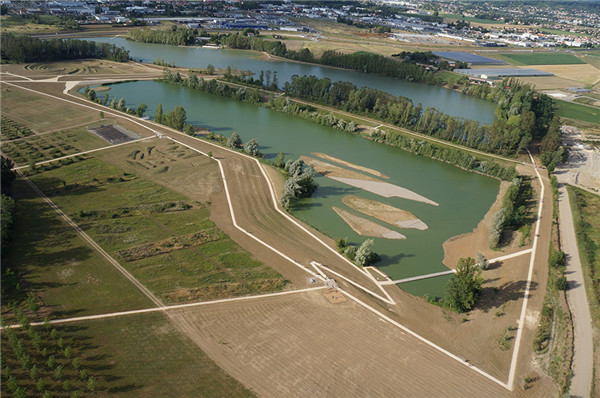法國Passeligne Pélissier自然公園立足于一片農場和一片工業砂石場之上。設計主要專注于三個元素:地面,水,人類活動。通過優美的環境將這三個要素天衣無縫的混合。山地景觀,湖面,微地形,豐富的植被景觀,大型大地藝術,通往水面的自然駁岸等等,讓整個公園游人體驗豐富,也為生物提供了多樣性發展的條件。