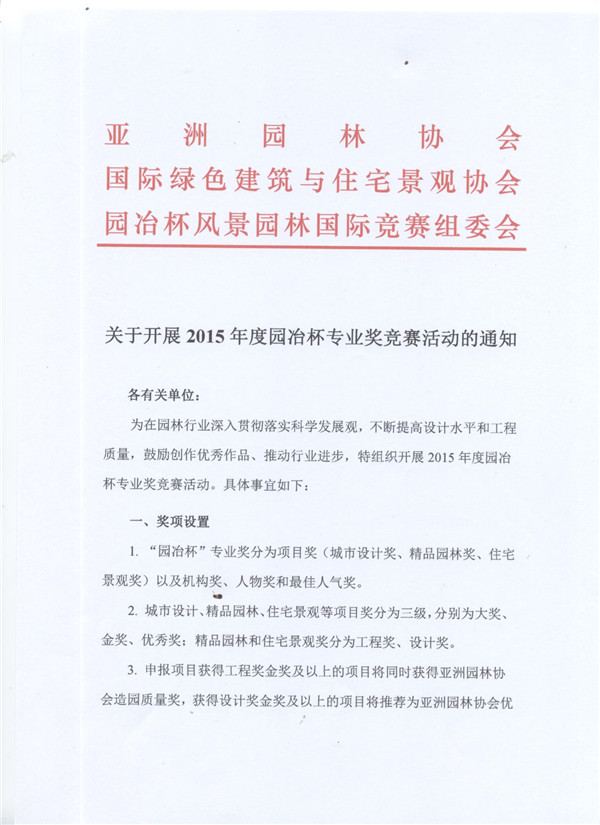 關(guān)于開展2015年度園冶杯專業(yè)獎(jiǎng)競(jìng)賽活動(dòng)的通知