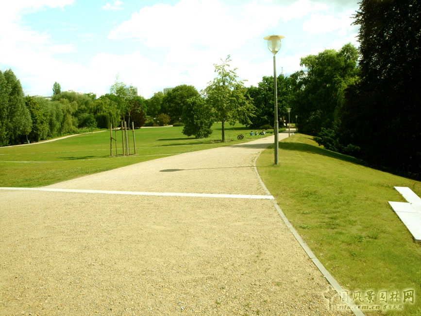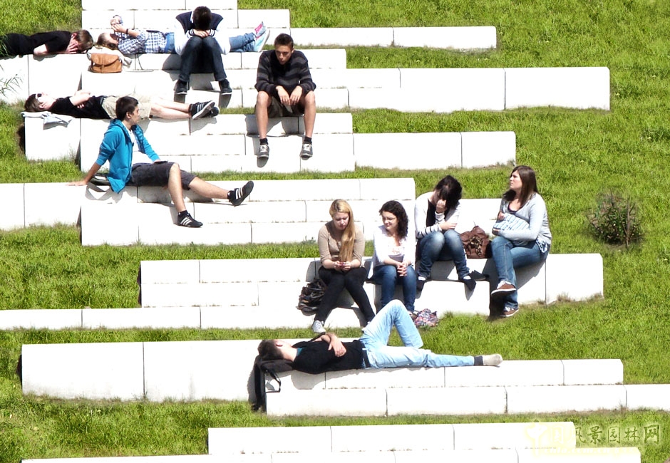 雖然公園具有清晰的人行道路徑,但是具體問題具體分析,在綠色的草地上,設計師就采用混凝土臺階,創造了梯田式的景象。這些臺階和線性設計作品凸顯出了公園的現代設計特色。線性設計具有干凈和簡單的外觀特性,但是卻略顯生硬,游客們可能更多的會傾向于選擇放松身心的小徑和空間。