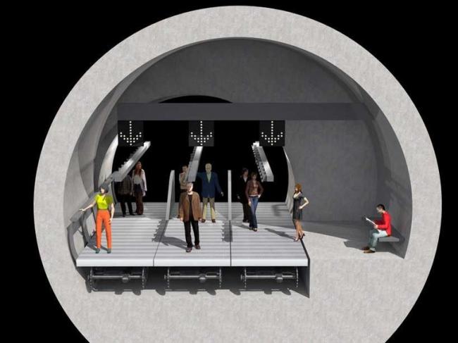 該項目將提供三個自動人行道車道,這個自動人行道有點類似機場的自動人行道,但又更複雜,因為它將根據人潮流量劃分速度,并以不同的顏色識別:黃色是緩慢(時速不到5公里),橙色被視為平均水平(時速19公里)和最快的紅色(時速24公里),當抵達車站時,人行道速度將減少,使人們轉出連接走廊「下車」或是「轉乘」。
