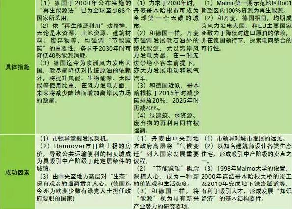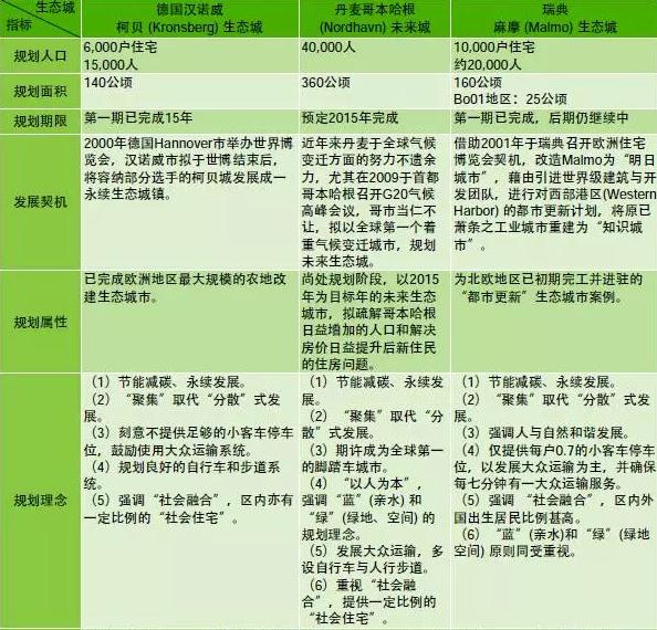 根據歐洲生態型小城鎮的特征,從基本情況、發展契機、規劃理念、具體措施和成功因素等方面逐一進行比對分析,為我國生態型小城鎮規劃提供經驗和啟示(見表1)。