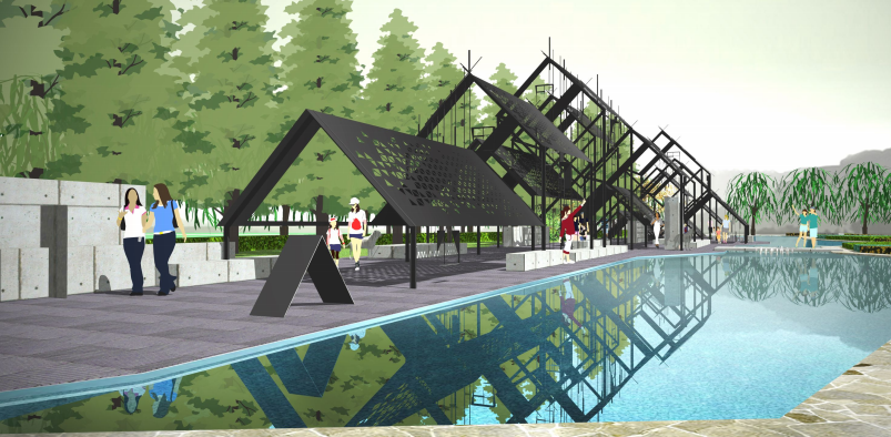 運用現代的設計語言、中式水墨畫虛實相結的手法,并結合湖北的地域特征,通過簡影、映射、神韻等方式,傳達一種生態自然的鄉村印象,體現了回歸自然、崇尚自然的人文精神。