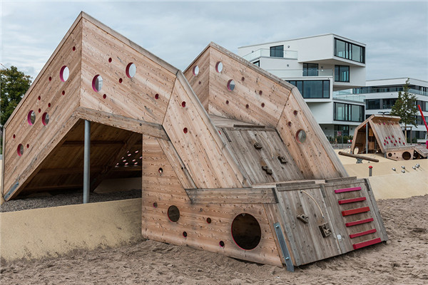 項目中最被市民所知的校園體育娛樂場地的所在地以前是煤場。“經典”游戲和運動場所由于各種運動練習的費用過高而被迫關門。景觀設計師利用遺留的設施結構以及被保留下來的植物群落作為設計框架,打造出一個自然場所。這一應用是基于對生態學的思考以及精心設計整合。