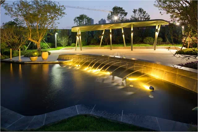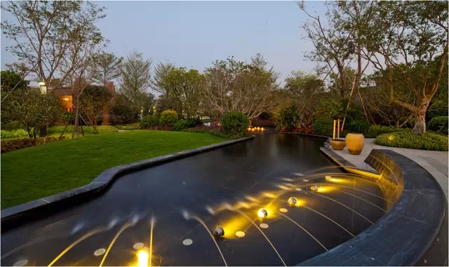 項目入口處設計了多層次的觀水平臺和半圍合的平臺,使得入口的儀式感得到了很大提升。樣板房附近的水系則通過綠化的圍合,讓水系若有若無的顯現于道路兩側,增加了視覺的變化和悅耳的流水聲。在綠化設計上,奧雅將公園的休閑性和輕松氛圍也融入其中,營造了更加愉悅的參觀體驗。