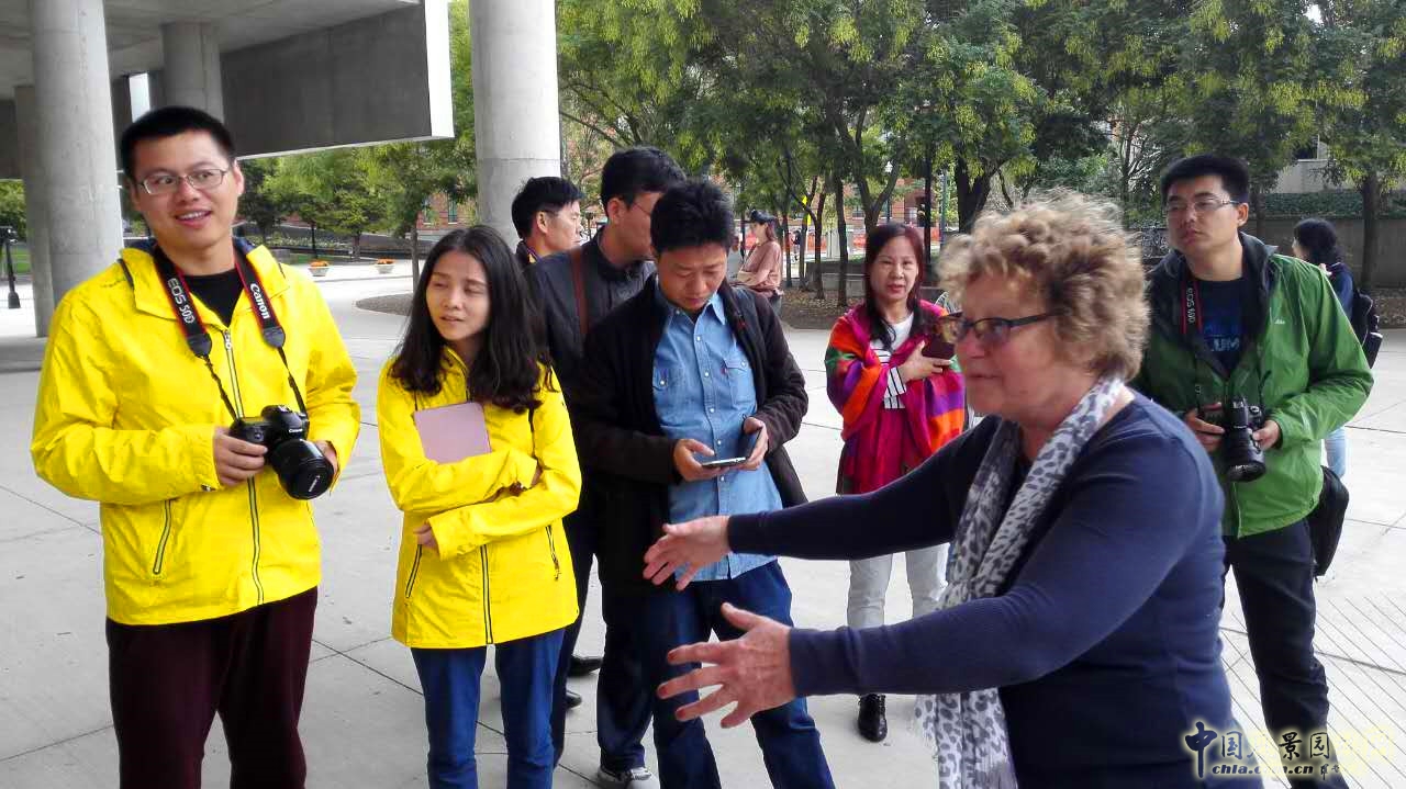 在景觀設(shè)計(jì)專業(yè)教授、講師的陪同下,成員們參觀了這所擁有四幢被評(píng)為國(guó)家歷史文物保護(hù)建筑(EnarsonHall、HayesHall、OhioStadium、OrtonHall)的大學(xué)校園。校園建筑并非統(tǒng)一的哥特式或喬治王時(shí)代建筑風(fēng)格,而是多種建筑風(fēng)格的混搭,包括傳統(tǒng)風(fēng)格、現(xiàn)代風(fēng)格和后現(xiàn)代風(fēng)格。