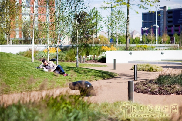 中國風景園林網訊 位于英國大曼徹斯特都會區的索爾福德市是英格蘭西北部的一個重要港市。隨著“傳媒之城(MediaCityUK)”的建成,眾多頗具創意的公司及電視頻道都搬遷至此,嶄新的公共空間與濱水景觀更襯托出了這片創新型空間的氣質。“傳媒之城”是英國最大的建設項目之一,是傳統工業碼頭改造的經典工程。