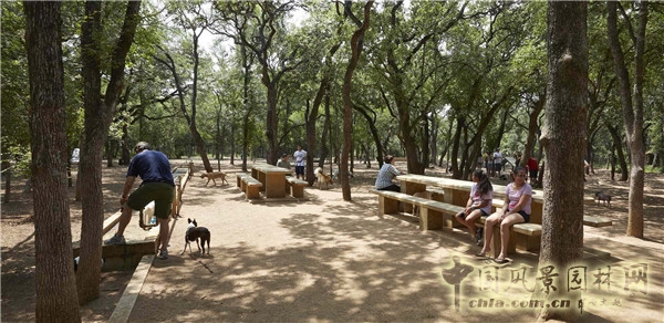 公園中的野餐區(qū)域完美地鑲嵌于橡樹及榆木叢中,是居民們聚會及游樂的極佳場所。這塊休閑區(qū)域的設(shè)置滿足了長期處于擁擠空間中的居民對于開放空間的需求。