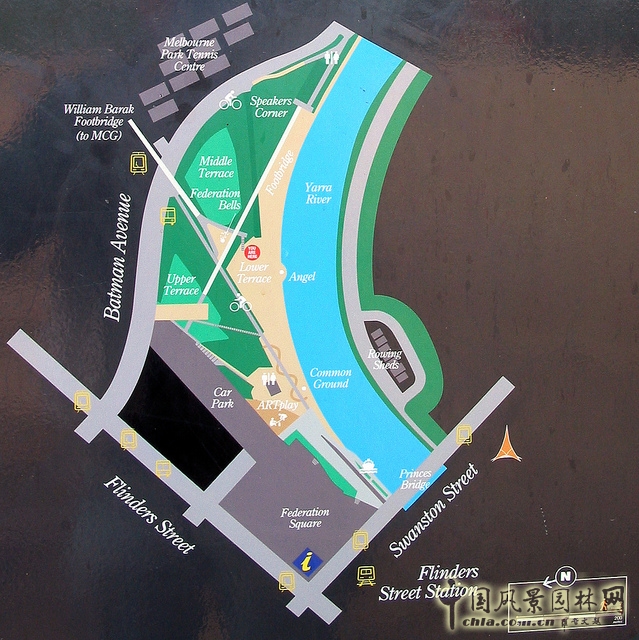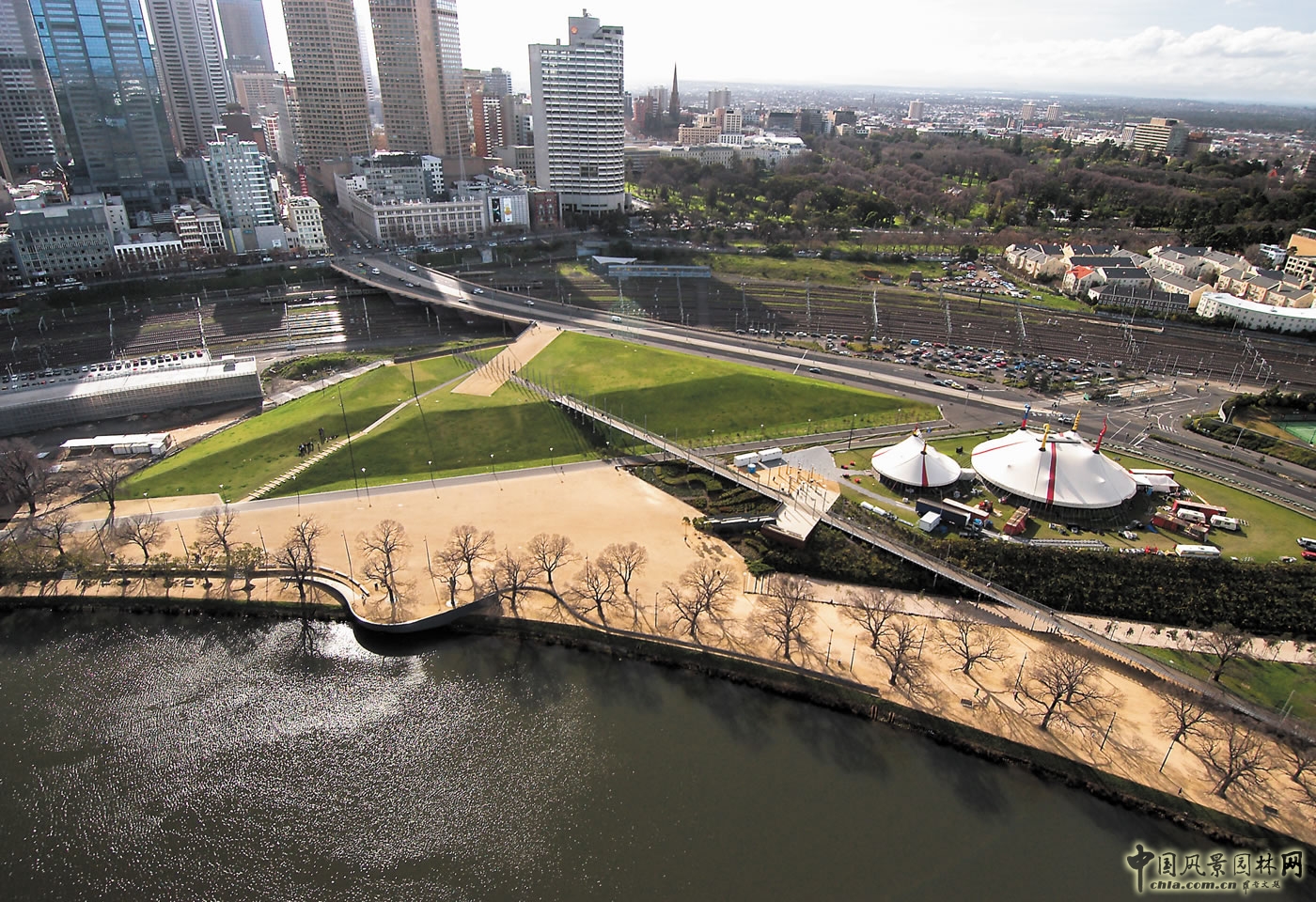 中國風景園林網訊 Birrarung Marr位于亞拉河的北岸緊鄰聯邦廣場,是墨爾本市內著名的中心公園,旨在擁抱社會和公民的生活。于2002年開放,經常舉辦各種類型的嘉年華活動。