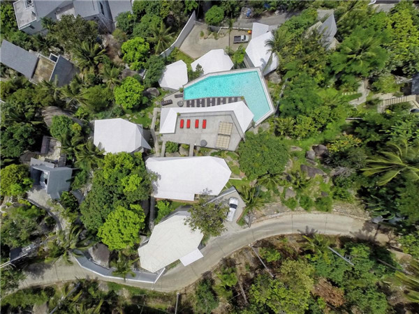 蘇梅島度假酒店是位于泰國蘇梅島東海岸查汶海灘的一座特別而又舒適的休閑度假好去處。項(xiàng)目位于一座山坡上,有著非常好的視野卻同時(shí)也有著極大的限制:50%多的坡上有著巨大而眾多的花崗巖和繁茂的植被。設(shè)計(jì)師圍繞這些限制條件,利用它們的優(yōu)勢完成設(shè)計(jì)。