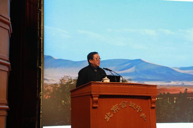 孟兆禎的報告名為“人民呼喚綠水青山”,他提到“綠水青山孕育了中華民族”、“山水詩,山水畫,為中國山水鑄就了靈魂”、“盛世呼喚山水”、“力求精妙山水文章”四個方面進(jìn)行解讀,并將理論與實(shí)踐,結(jié)合他親自設(shè)計的園子,他用精妙的手法通過景題、楹聯(lián)、匾額的形式,表達(dá)意境將山水詩畫的意境。孟先生還忠實(shí)古跡,尊重、順應(yīng)、保護(hù)綠水青山。