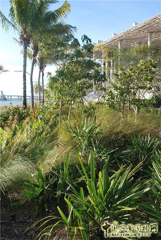 椰子樹抗逆性強(qiáng),抗風(fēng)及抗鹽堿,這形成了海灣旁植被的第一道抵抗線。低地的雨水花園中,植物可以抵擋洪水的泛濫,而落葉木等植物則被種植在離海灣較遠(yuǎn)的地方。