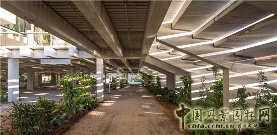 停車場的車輛通道運用可在低光照情況下正常生長的植物,營造自然格調。同時,運用暴雨儲備系統、冷凝設備等進行植物灌溉。晨光將透過天花板或者樓梯的縫隙滲透進來。