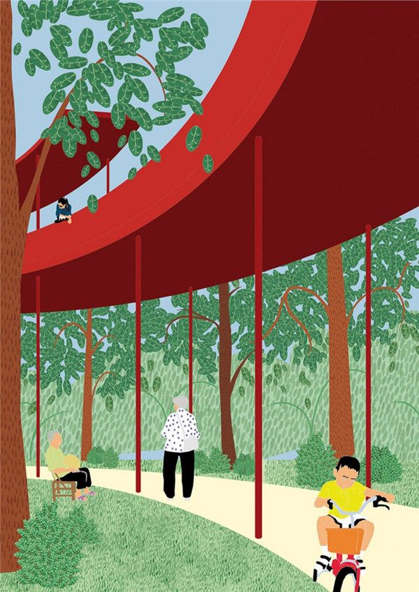 長廊為底層的空間提供遮蔽風雨的無障礙使用空間